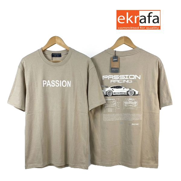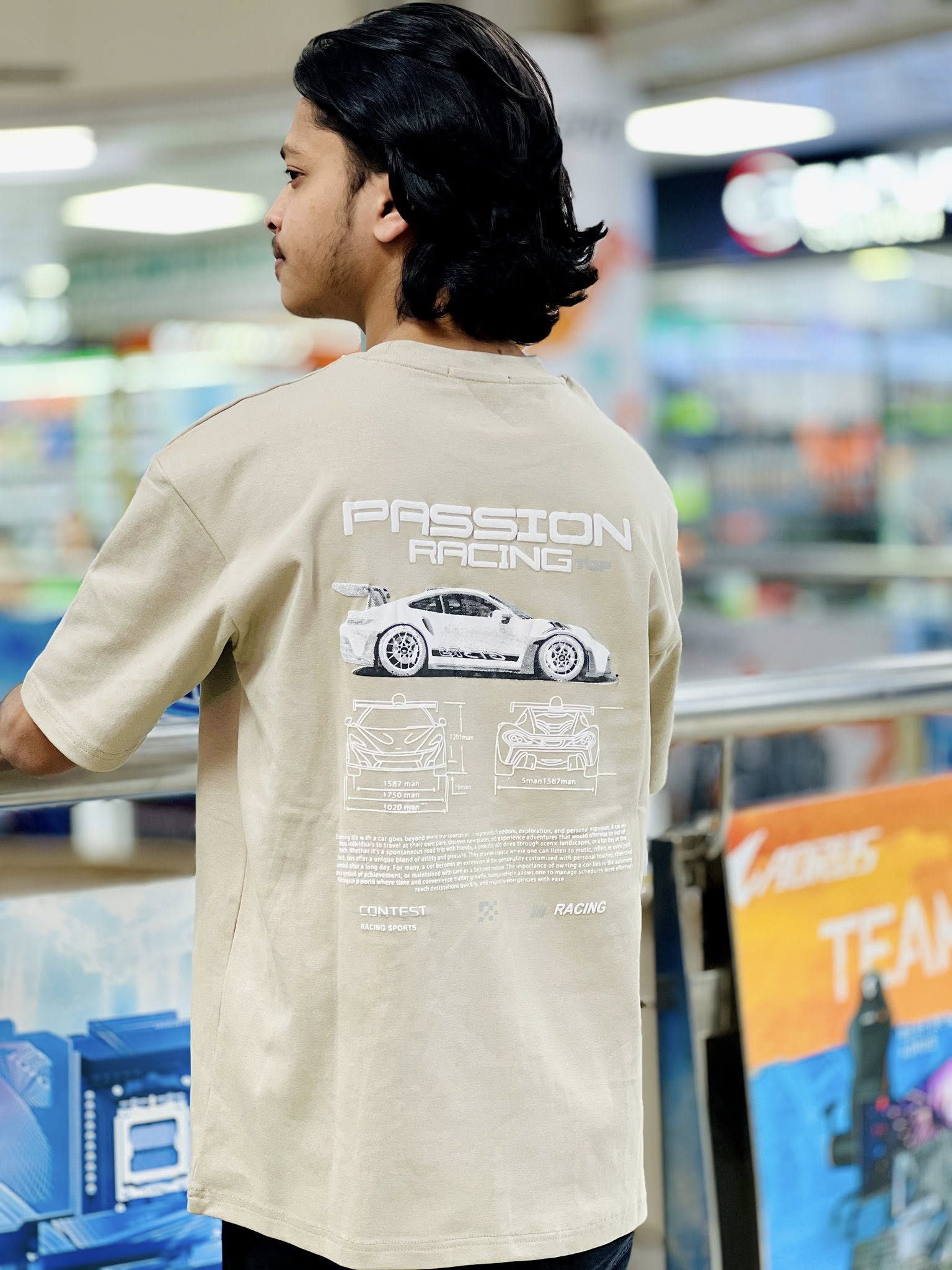 * ডিজাইন: টি-শার্টের সামনে মিনিমালিস্ট স্টাইলে সাদা রঙে “PASSION” লেখা এবং পেছনে গাড়ির রেসিং মোটিফসহ বিস্তারিত “PASSION RACING” গ্রাফিক প্রিন্ট।